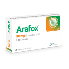 "أرافوكس 90 ملغ" (Arafox 90 mg) هو دواء يحتوي على المادة الفعالة إيتوريكوكسيب. المادة الفعالة: إيتوريكوكسيب، وهي مضاد للالتهابات غير ستيرويدي (NSAID)