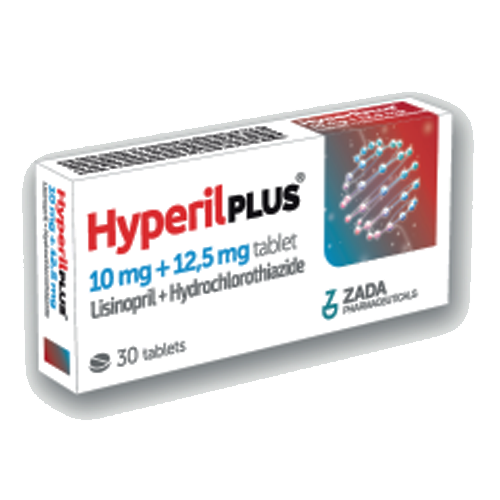 30 (3×10) tablets of 10 mg lisinopril+12,5 mg hydrochlorothiazide in Al/PVC/PVDC blister in carton box