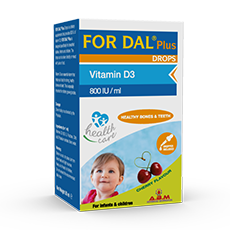 For Dal Drops قطرات فيتامين ( د ) ( 800 وحدة دولية لكل 1 مل محلول ميسيلار تقنية حديثة تحقق عبر عملية البلورة التي أتاحت نوع من التميز لفيتامين (د) كقابلية الذوبان في الماء وزيادة الامتصاص والتواجد الدوائي اربع مرات عن فيتامين د العادي . يحسن فيتامين (د) من صحة العظام والاسنان ويعزز المناعة ، جيد لصحة الجهاز التنفسي يمكن أخذه مباشرة أو عبر خلطة بالمشروبات الجرعة 1 مل يوميا أو حسب توجيهات الطبيب المختص